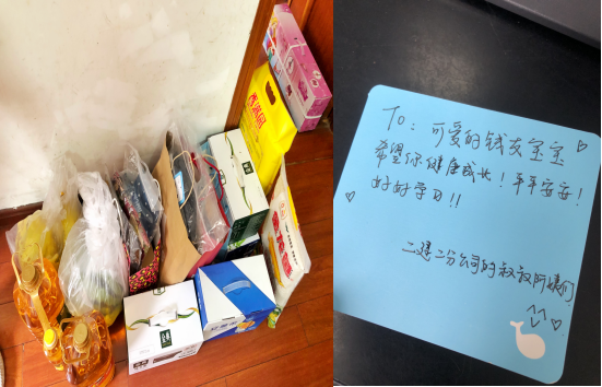 時(shí)隔三年,二分公司工會(huì)心系祖孫二人的生活狀況,了解到目前他們已被我公司職工接來合肥,老人租房帶著孫子在省二建幼兒園上學(xué)。志愿服務(wù)隊(duì)了解到具體需求后,即刻在分公司范圍內(nèi)組織了捐款和捐贈(zèng)物資的扶貧幫困志愿服務(wù)活動(dòng),二分公司職工積極響應(yīng),踴躍捐贈(zèng),短短幾天時(shí)間募得慰問金4100元以及米面糧油、牛奶酸奶、水果、兒童圖書、玩具、老人及孩子的衣物鞋子等生活物品。2020年5月29日上午,二分公司工會(huì)主席黃業(yè)云帶領(lǐng)三支志愿服務(wù)隊(duì)代表前往老人家里看望老人及孩子。服務(wù)隊(duì)將大家捐獻(xiàn)的慰問金和生活物品一并交給了他們,希望能讓他們的生活過得好一點(diǎn),能夠感受到二建大家庭的溫暖。交談中,老人質(zhì)樸的臉頰上始終帶著微笑,身旁的孫子也是乖巧懂事,非常有禮貌,一直開心地說著“謝謝叔叔阿姨!”