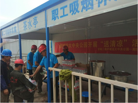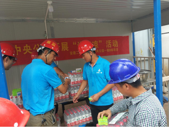 連日來氣溫居高不下,舒城遠大中央公園項目部于6月27日下午在施工現(xiàn)場開展了為工友“送清涼”活動,表達了項目部對奮戰(zhàn)在高溫酷暑下員工的關(guān)懷與慰問。
