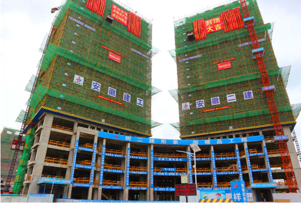 五星紅旗迎風(fēng)揚(yáng),項(xiàng)目封頂慶華誕——安徽二建生物島一期工程主體結(jié)構(gòu)順利封頂